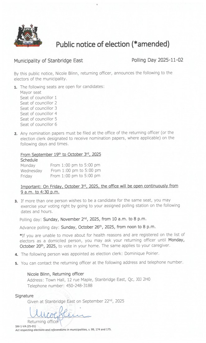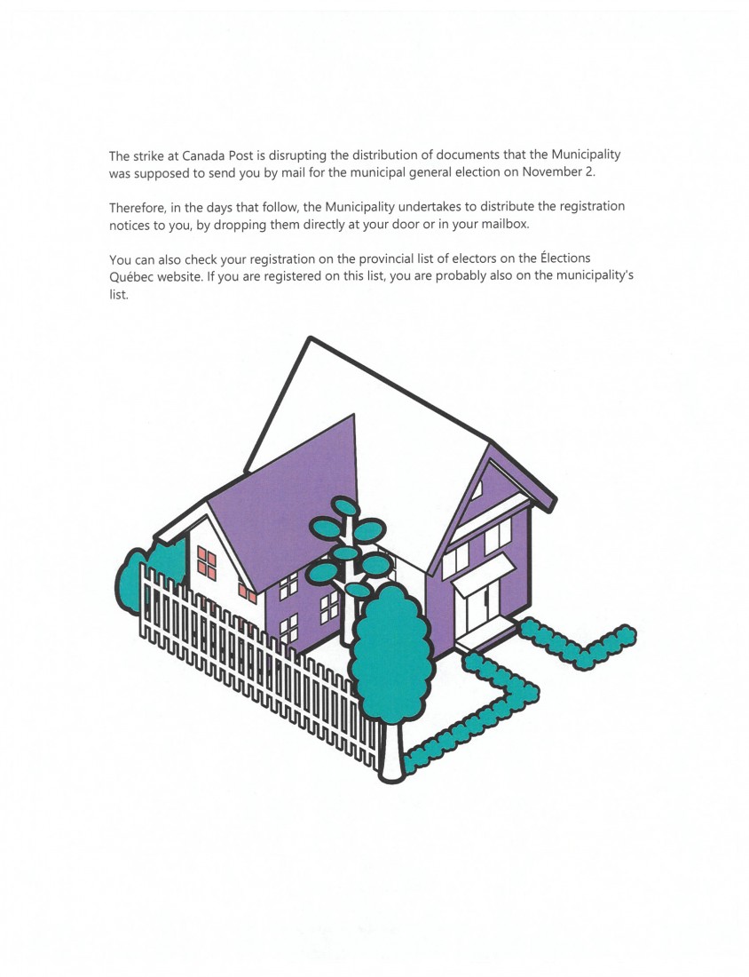 Distribution of the registration notices (municipal general election 2025), regarding the strike at Canada Post.