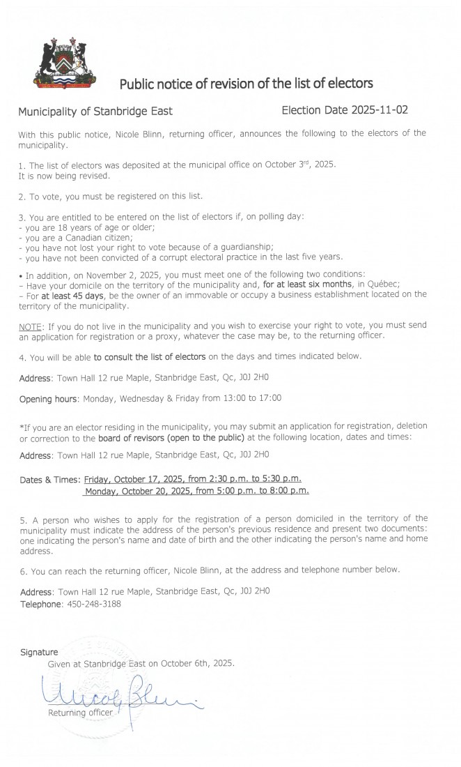 PUBLIC NOTICE OF THE REVISION OH THE LIST OF ELECTORS: