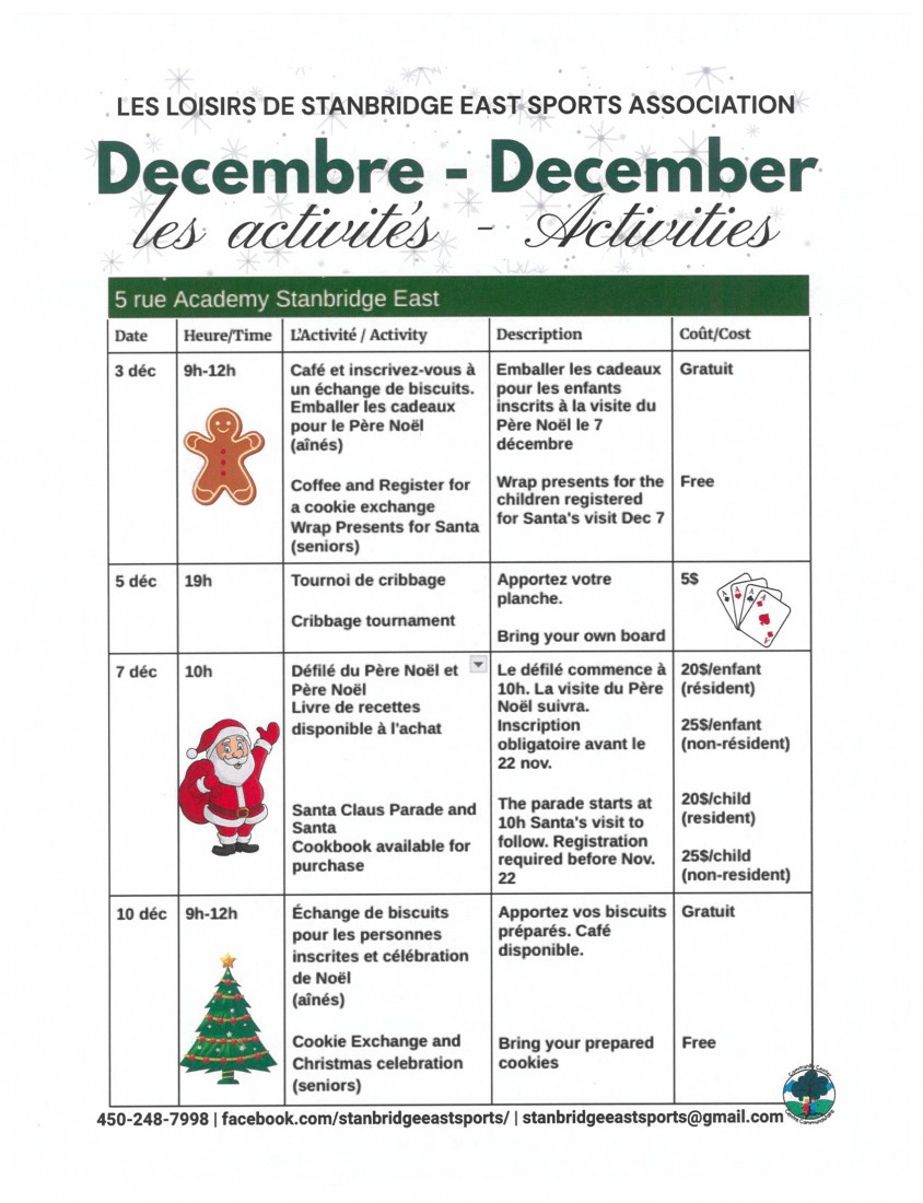 Vanessa Bockus (Coordonnatrice des activités S.E.S.A) 450-248-7998, stanbridgeeastsports@gmail.com